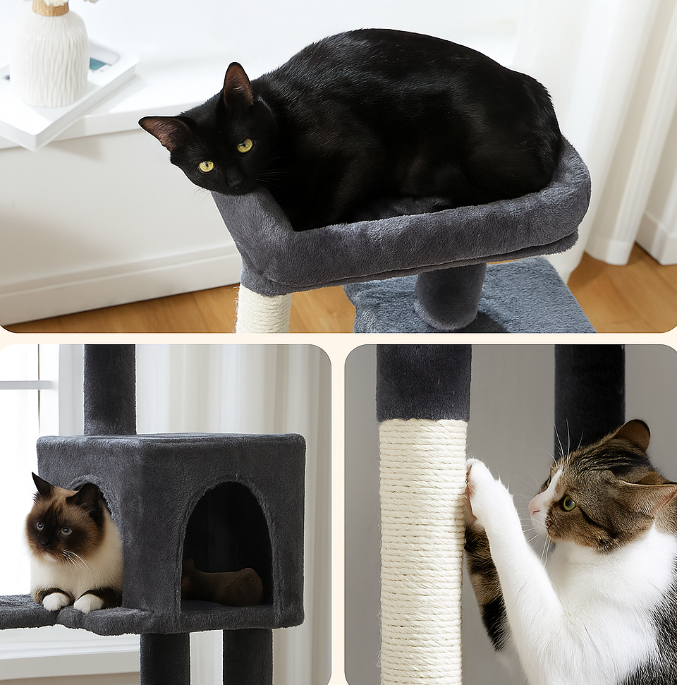 Offrez à votre compagnon un espace de jeu, de repos et de griffage complet. Chaque détail de notre arbre à chat est pensé pour allier stabilité, confort et sécurité, afin que votre félin s’épanouisse pleinement chaque jour.