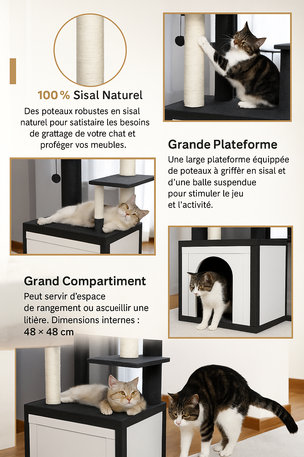 Offrez à votre compagnon félin un espace de jeu, de repos et de détente complet tout en gardant votre maison propre et organisée.