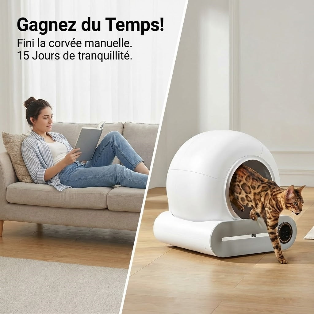 Offrez à votre chat un espace toujours propre et sécurisant, tout en simplifiant votre quotidien grâce à une technologie intelligente et silencieuse.